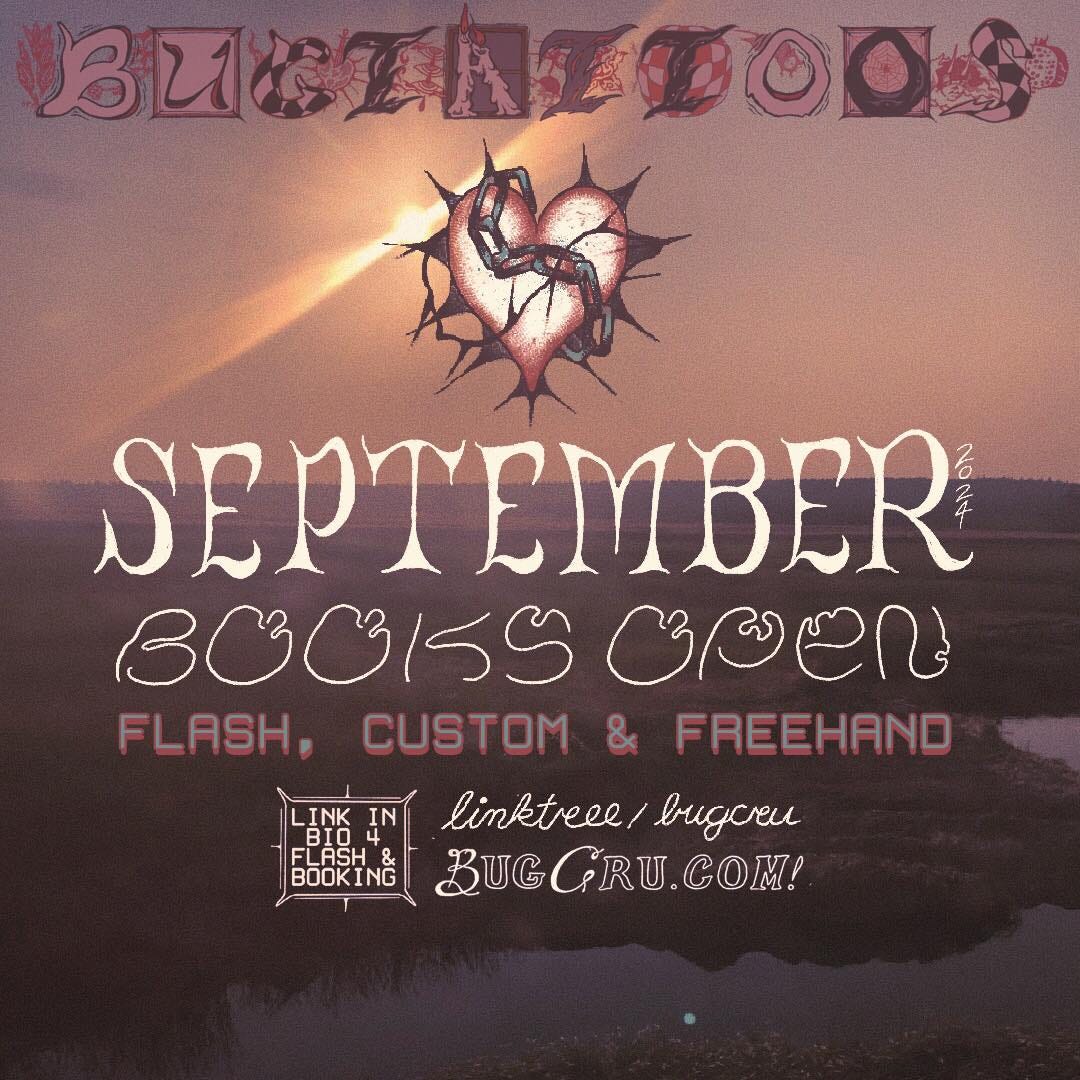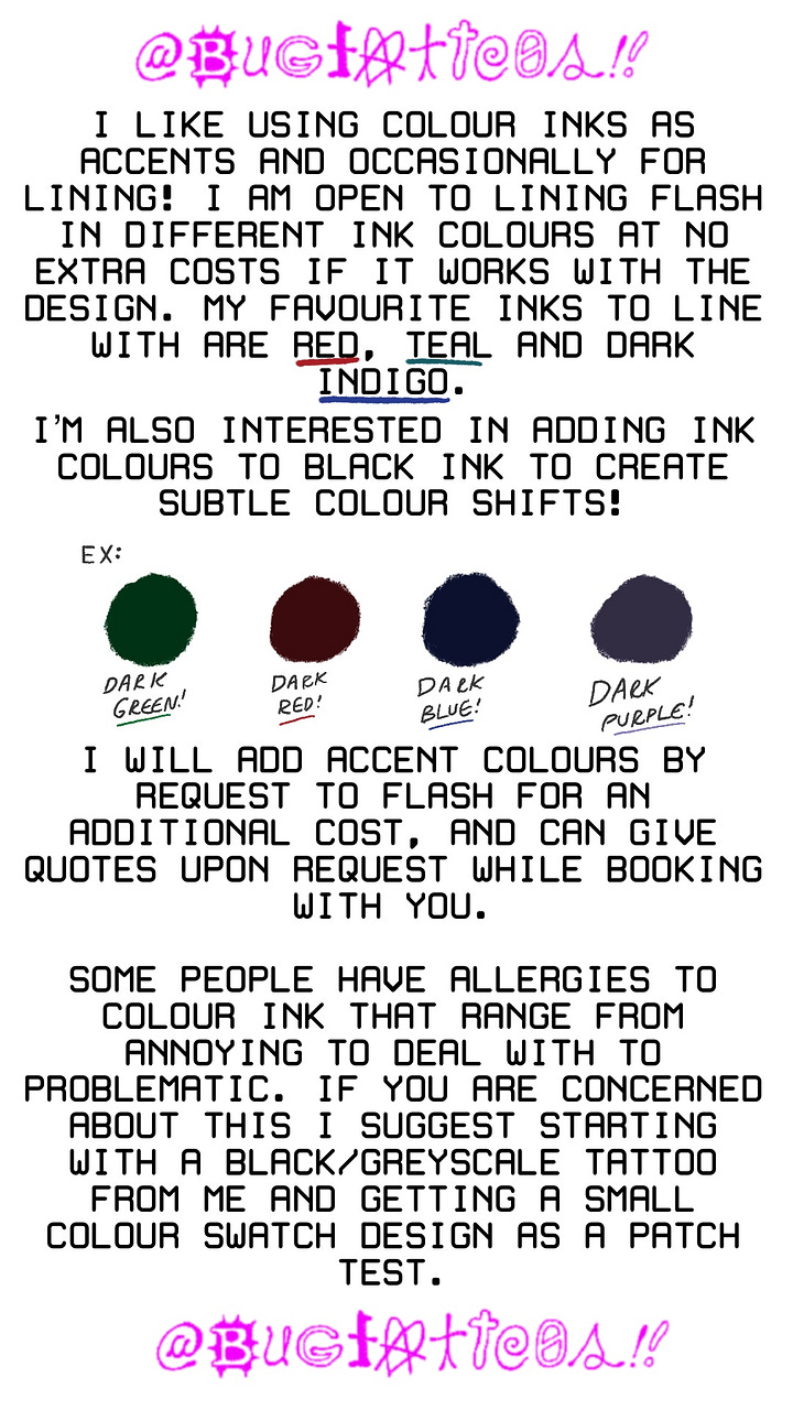 Iβm officially opening my books for September, accepting client requests for all my regular tattoo services! If youβd like to read up on the intricacies of those check out the detailed info on the tattoo portion of my website.